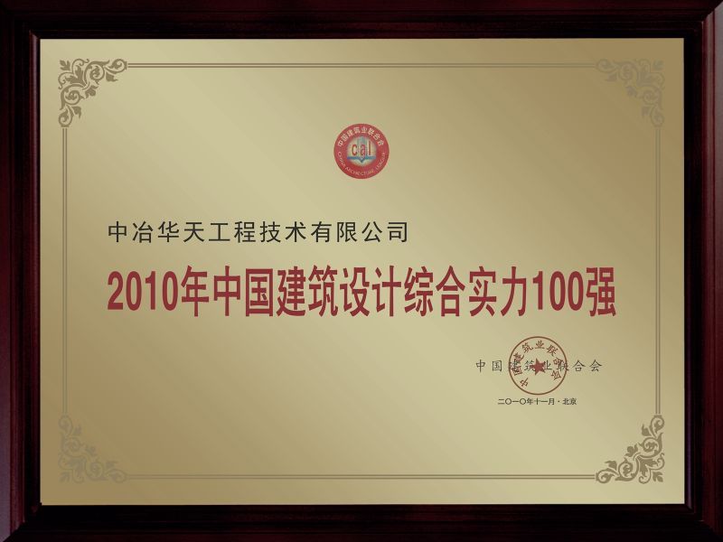Top 100 Comprehensive Strength of Chinese Architectural Design