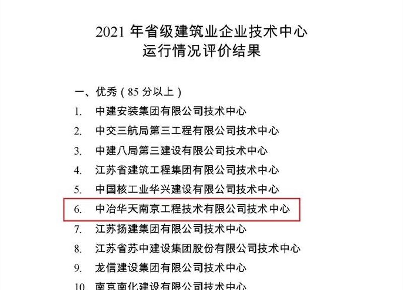 Recently, the Industry and Information Technology Department of Jiangsu and the Department of Housing and Urban-Rural Development of Jiangsu Province issued the Notice on Announcing the 2021 Evaluation Results of the Construction and Operation of Provincial Construction Enterprise Technology Centers. MCC Huatian was rated as an excellent Jiangsu Construction Enterprise Technology Center. Among the total 149 enterprises participating in the evaluation, 15 enterprise technology centers were rated excellent. This is the first time that MCC Huatian has been awarded excellent after its center was approved.
