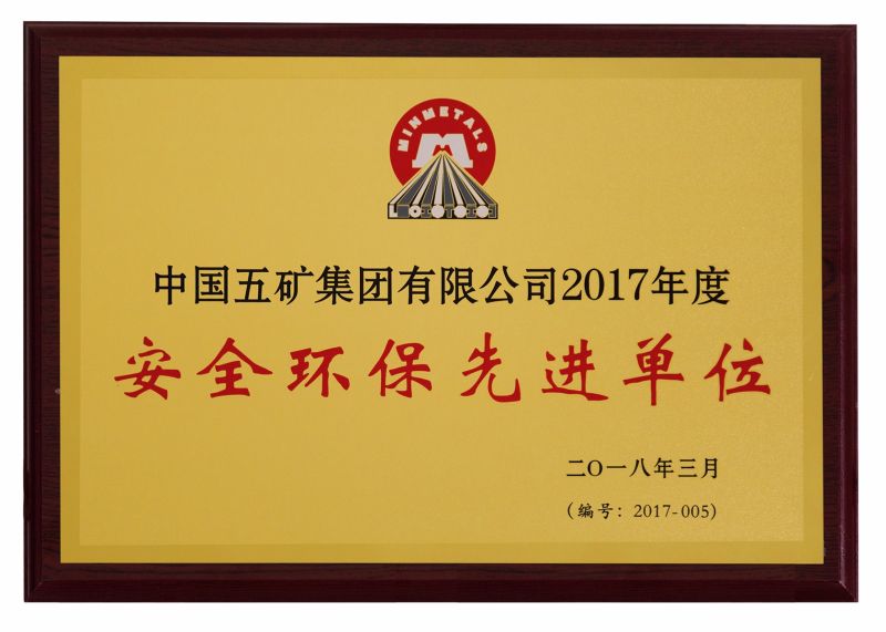 中國五礦2017年度安全環(huán)保先進單位